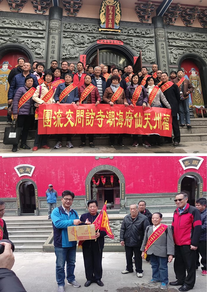 399 - 福州天仙府海潮寺與復興村五靈公廟、山隴白馬尊王廟 by 小編「五靈公」信仰遍及海峽兩岸,也是馬祖的主要民間信仰之一。福州天仙府海潮寺主祀五靈公,百度百科記載,該寺原址位於清代南台萬壽境內,清康熙年間已有端午進香記載。1943年遷至排尾重建,1955年戰火損毀後修覆,文革期間遭破壞,改革開放後恢覆宗教活動。2002年原址重建,2005年獲宗教場所資質。2013年設立海峽兩岸五靈公信仰文化交流中心,2014至2015年其龍舟會親習俗被列入福州市非物質文化遺產名錄。現為福州台江區重要古跡景點之一。 2019年3月16日,福州天仙府海潮寺馬祖會香之旅,一行32人在主委陳建忠帶領下16日透過小三通黃岐航線來到馬祖,前往馬祖各地祭祀五靈公的廟宇進行交流,受到各宮廟熱情歡迎。17日前往同樣有供奉五靈公的山隴白馬尊王廟交流,受到牛角五靈公廟主委曹爾章、山隴白馬尊王廟主委王連欽熱情招待。(馬祖日報)
