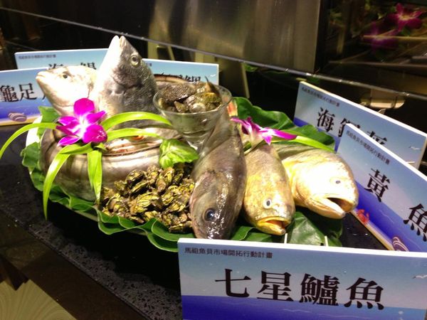 馬祖漁貝創意料理由曾獲2013 法國國際美食協會藍帶騎士獎,擁有20多年資歷的華洋手創餐廳主廚黃品棠掌廚,採用馬祖淡菜、黃魚、七星鱸魚、黑格、蠑螺等,示範了幾道創意料理。