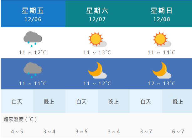 另外,中央氣象局預報,今明及後天,馬祖低溫11、12度,體感溫度更是下探3度,請留意保暖。
