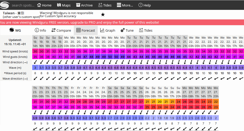 由於東北季風與風神颱風「共伴」效應,台灣海峽風強浪大,依據Windguru網站預報,未來5天莒光海域浪高都超過2.5公尺,而東引海域未來7天浪高都超過2.5公尺,莒光還要關島5天,東引多關島兩天。如果Windguru網站預報正確,莒光與南竿交通最快24日,最晚25日復航;東引與南竿交通將於26日復航。