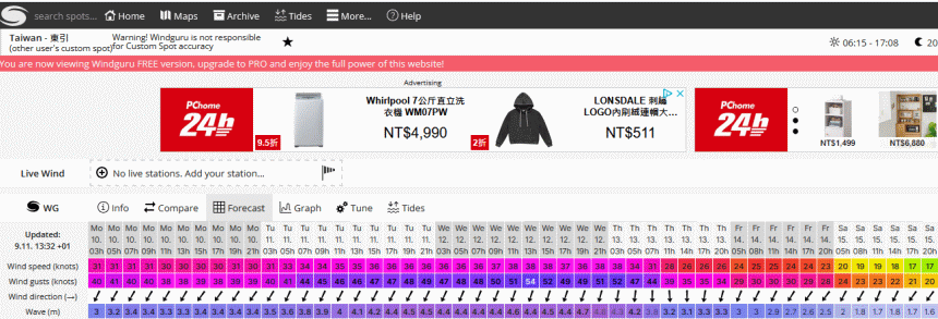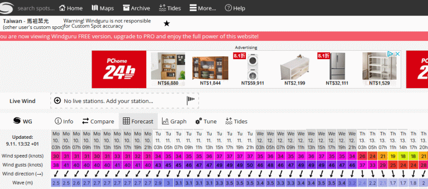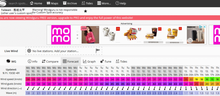 今天南北竿已公告10日和11日停航,但據Windguru網站預報,12日南北竿海域浪高仍達2.5公尺,如果預報正確,南北竿也要停航3天。