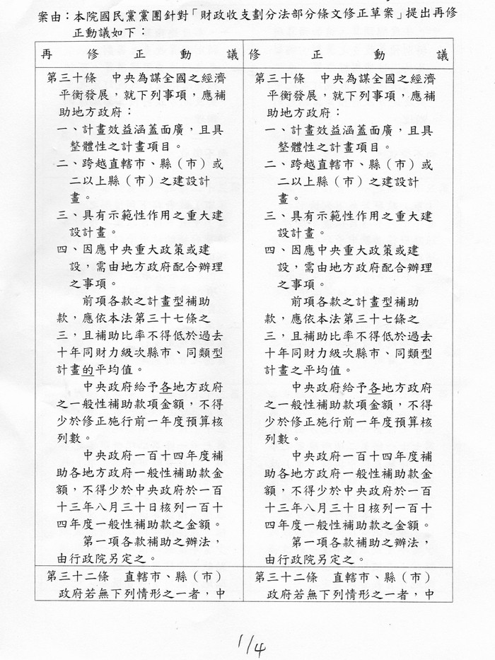 本日一般性補助款修法提案如列: