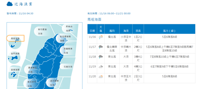 因海象不佳,為旅客及船舶安全考量原11/17-11/19東引航班停航。