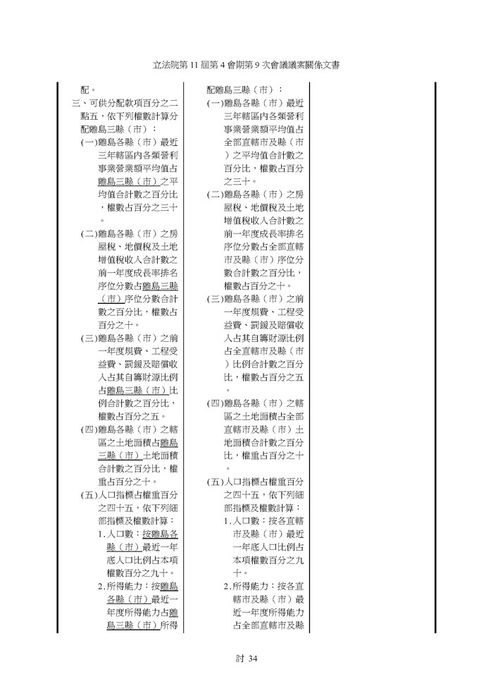 財劃法第十六條之一修正三讀通過 離島三縣統籌分配稅款獲保障