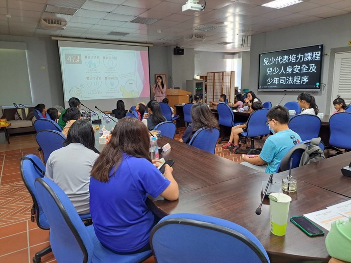 楊主任檢察官於民社處辦理「人身安全及少年司法程序+性騷擾防治與申訴管道」活動宣講