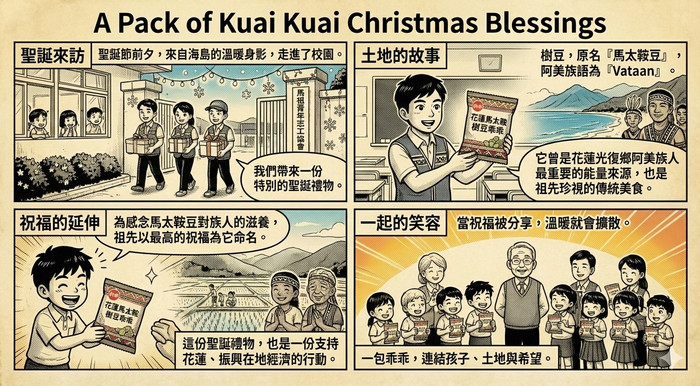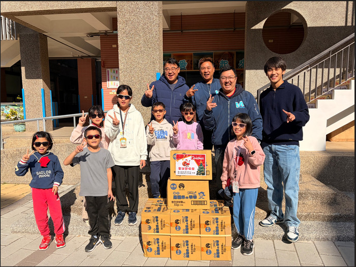 ✨這份小小的乖乖,不只是聖誕驚喜,更用實際行動支持花蓮在地農產、為地方經濟加油。活動最後,校長、三位志工與七位學生一起拿著乖乖開心合影,為這個溫暖又甜蜜的聖誕節,留下最美好的回憶❤️🎄