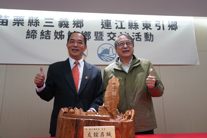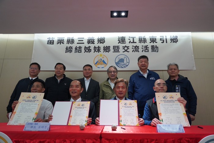東引與苗栗三義締結姐妹鄉鎮,促進台灣慢城交流 --閱讀人次 : 782 為促進台灣慢城發展與鄉鎮交流,苗栗縣三義鄉與連江縣東引鄉於2025年3月5日正式締結為姐妹鄉鎮。東引鄉公所由林德建鄉長率團前來三義鄉公所,與三義鄉長呂明忠共同簽署合作備忘錄,雙方將在慢城理念下深化文化、觀光與產業合作,攜手推動永續發展。