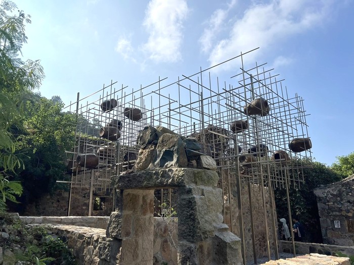 位於馬祖北竿后沃村,結合荒廢家屋與海平線,打造光影與物質交織的時空裝置。作品以百餘個傳統釀酒甕懸掛鋼構間,象徵馬祖豪邁與好客,喚起山海霧氣與飛機轟鳴的集體記憶。觀者穿行其間,身體感知光影變化,記憶如酒微醺流動,重...
