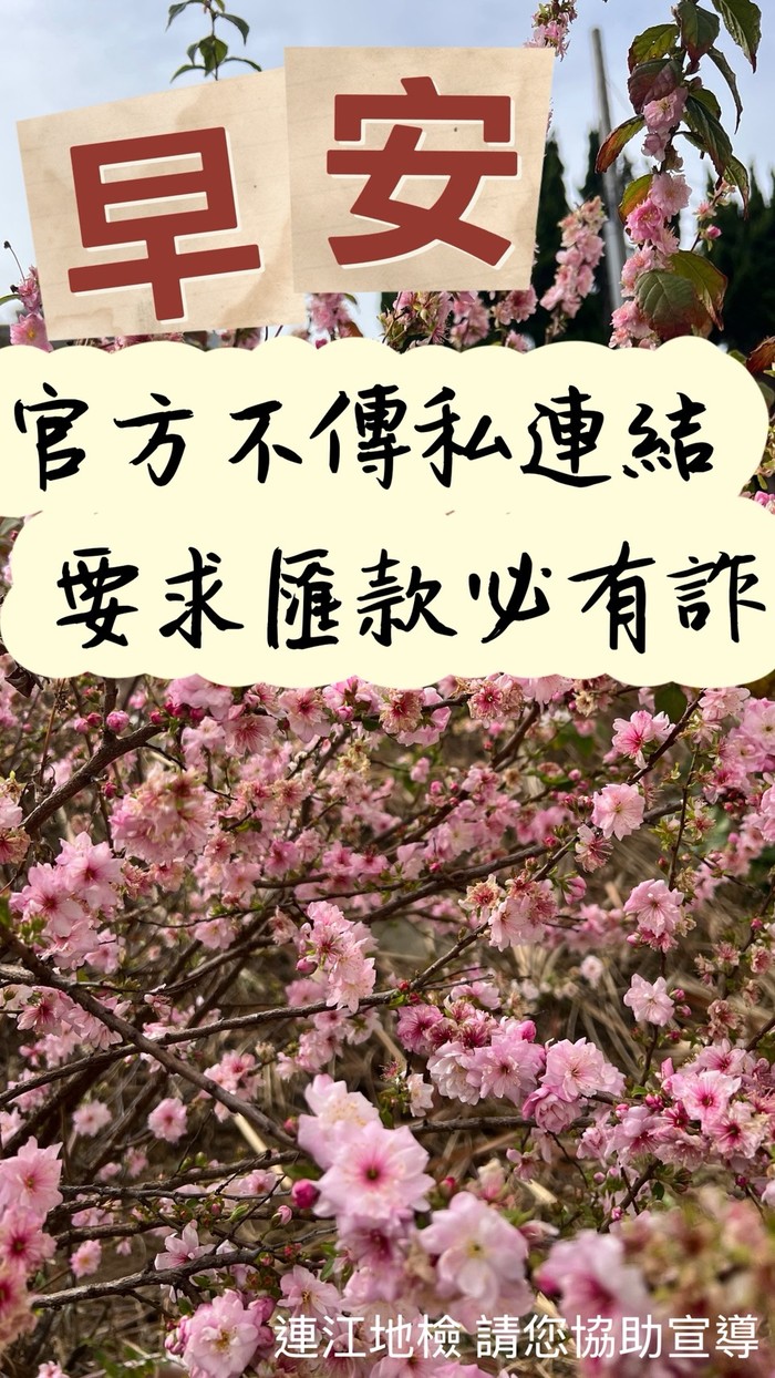 連江地檢向大家問早,官方不私訊,匯款必詐騙!!