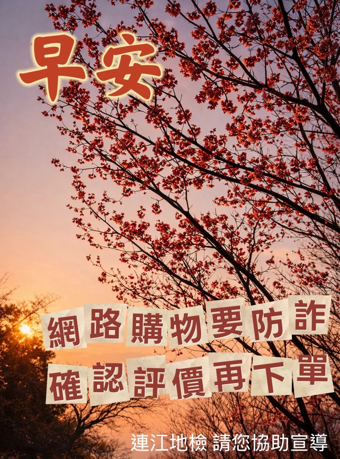 連江地檢向大家問早,網購不心急,查評價防詐騙!
