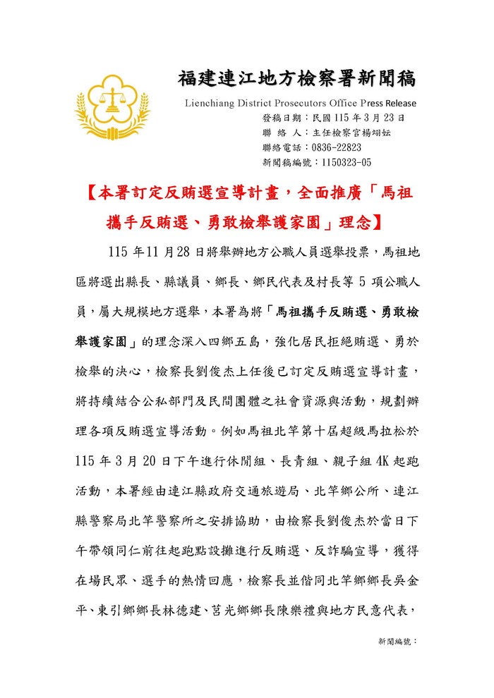 115/03/23連江地檢署北竿硬地馬拉松新聞稿