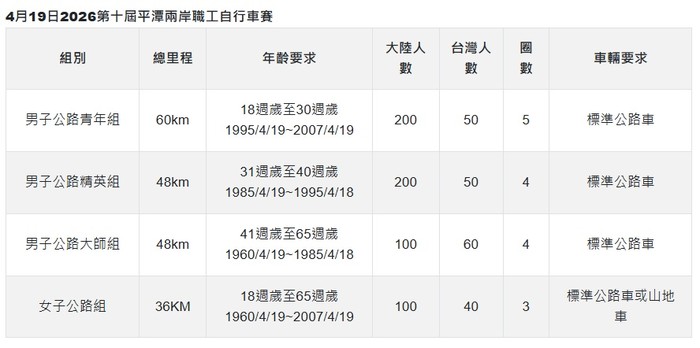 4/17-20平潭兩岸自行車騎遊活動 --閱讀人次 : 764 🚴♂️ 2026 第十屆平潭兩岸職工自行車賽暨 第六屆兩岸職工騎遊大會 🚴♀️