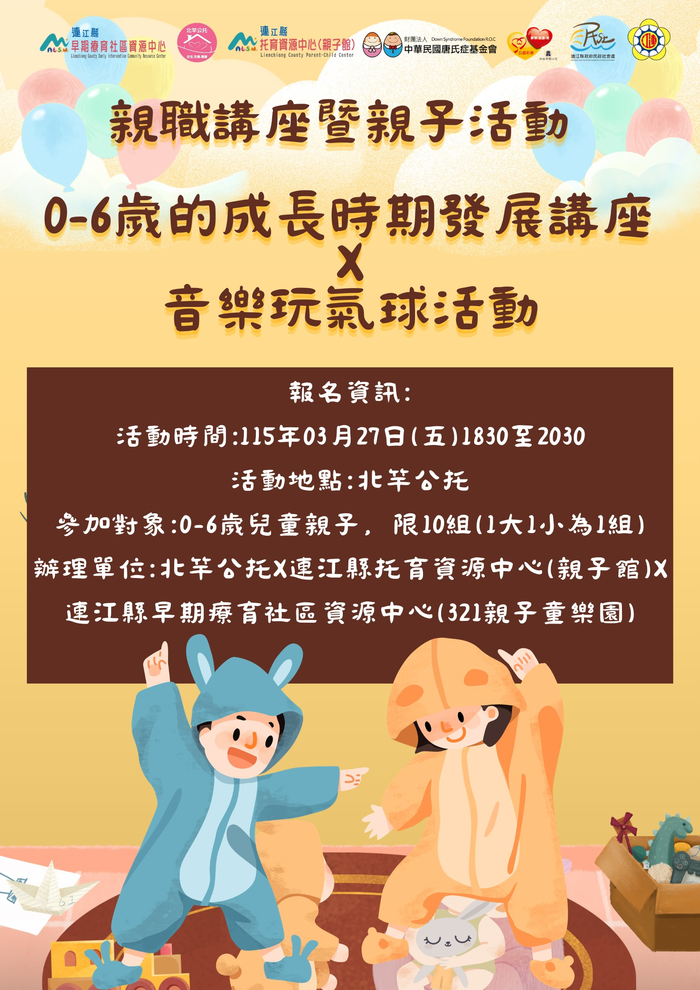 🔸講座期間僅提供 未滿七歲以下10名 臨托服務,其餘幼兒請妥善安排;講座無開放幼兒入場,臨托不接受現場報名。