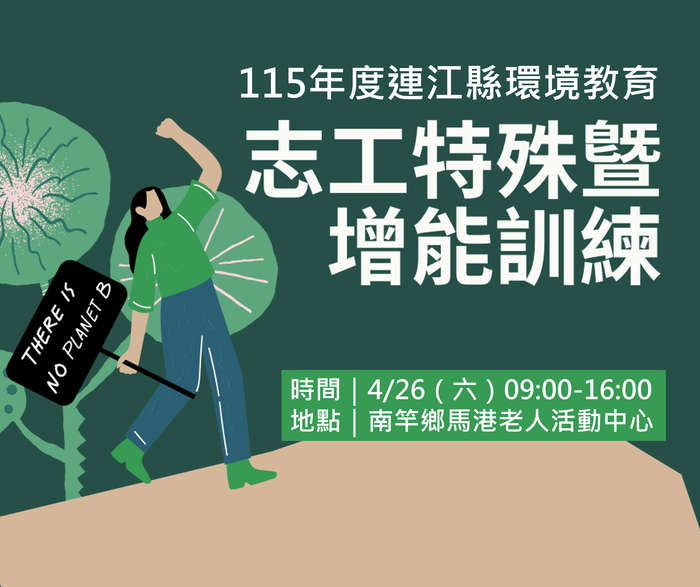 環境教育志工特殊曁增能訓練,報名開始! --閱讀人次 : 670 115年度連江縣環境教育志工特殊暨增能訓練:守護馬祖,從心出發!