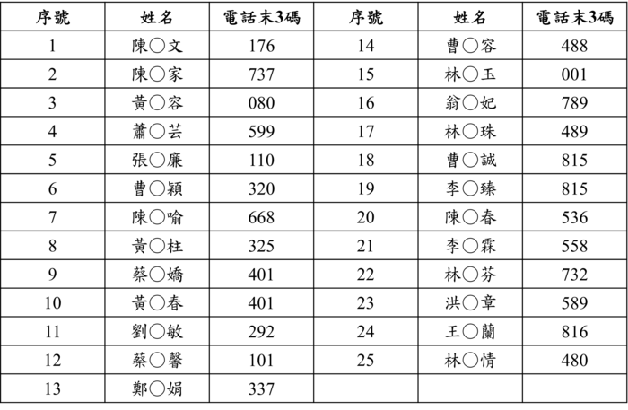 以下為本次錄取名單: