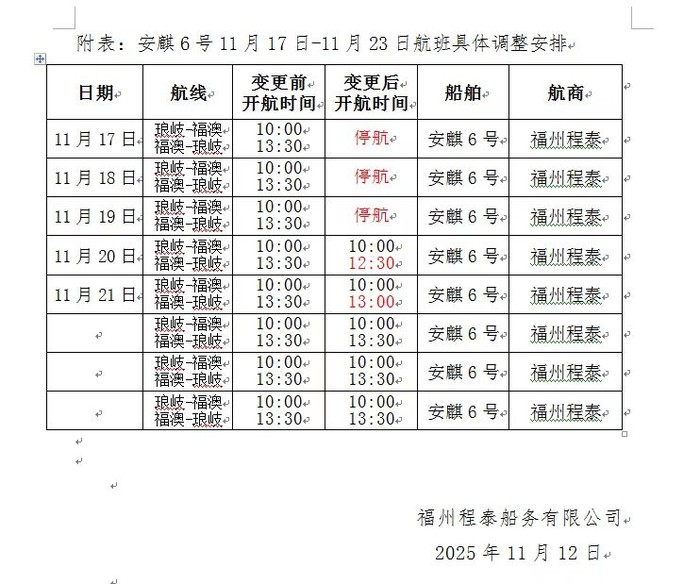 本輪因受潮水影響,故異動航班時間如下,請欲搭乘旅客多加留意!