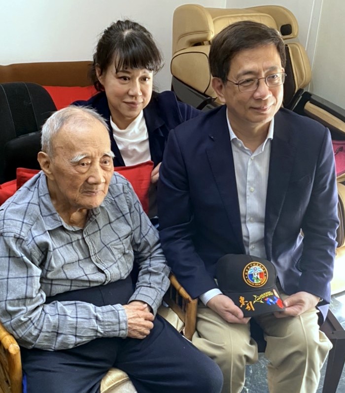 2021年2月,管中閔在台大校長任內前往拜訪老長官,與謝久將軍和他的女兒合影。