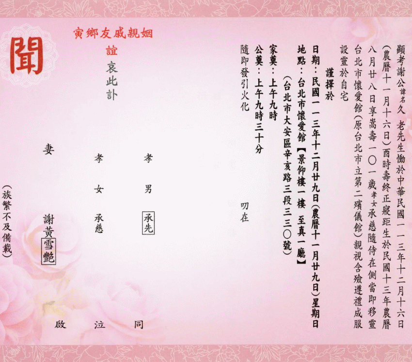 功在東引的前指揮官謝久過世,享嵩壽101歲(附訃聞及傳略) --閱讀人次 : 2792