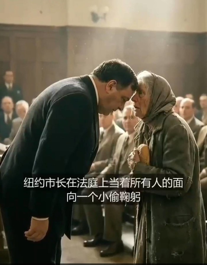 現場旁聽席上的民眾,和審判席上的法官,都心甘情願的每人自掏腰五角美元 放在拉瓜地亞市長的帽子裡,收齊後再送交給那位老太太。