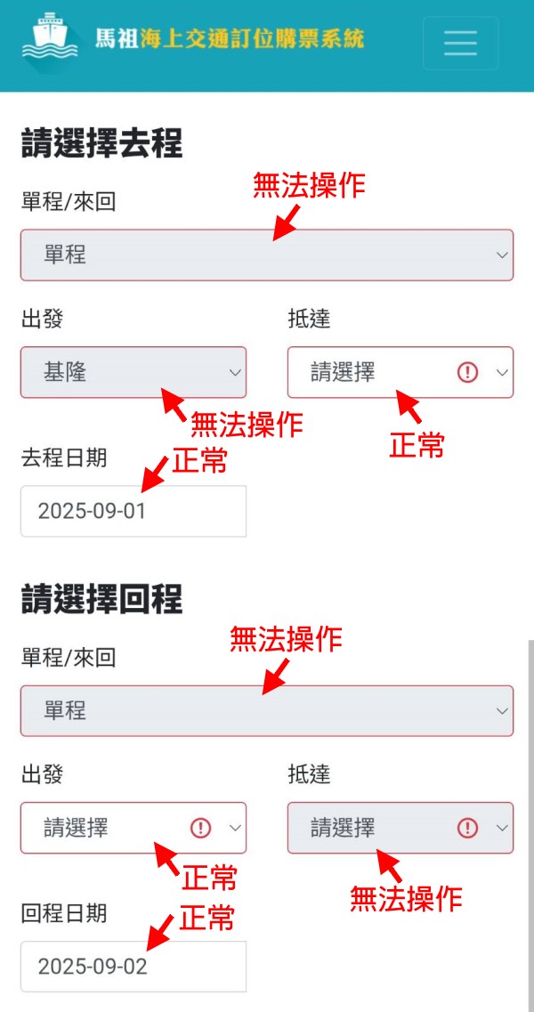 藝術島大專院校優惠票,干擾正常線上訂票 --閱讀人次 : 1351 今天使用手機操作馬祖海上訂票,發現有多個欄位無法正常運作: