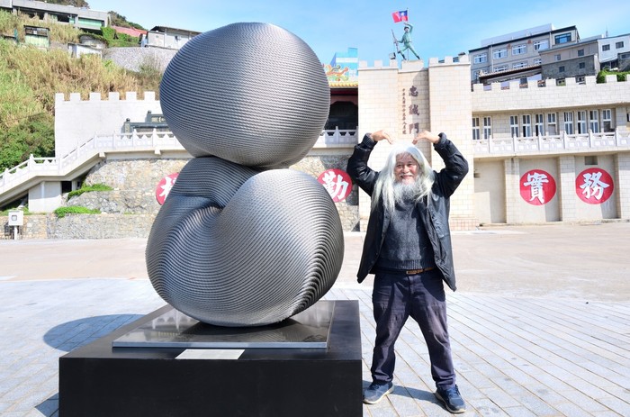 〈雙生〉 藝術家康木祥,前晚先跟基隆海洋廣場自己的作品〈毛小孩〉 Say...