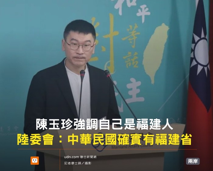 國民黨籍的金門縣立委陳玉珍最近強調自己是福建人,陸委會發言人兼副主委梁文傑16日對此回應說沒有意見,「因為中華民國確實有福建省,無所謂,只要是中華民國國民就好。」