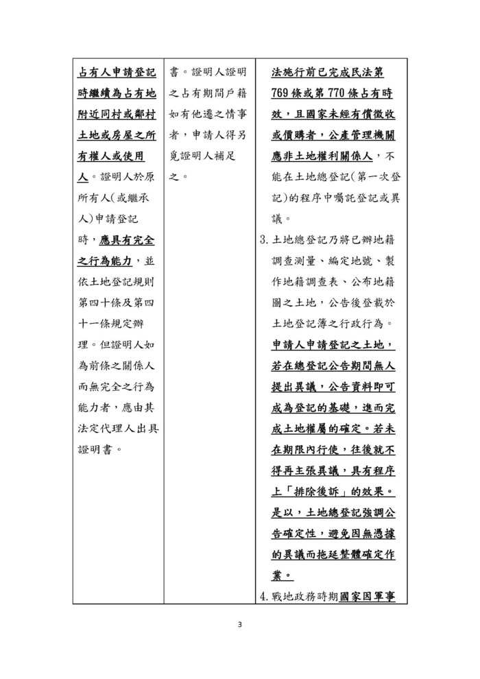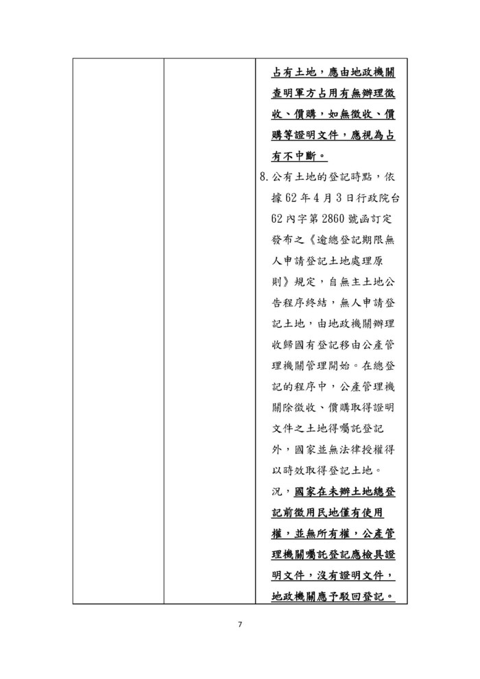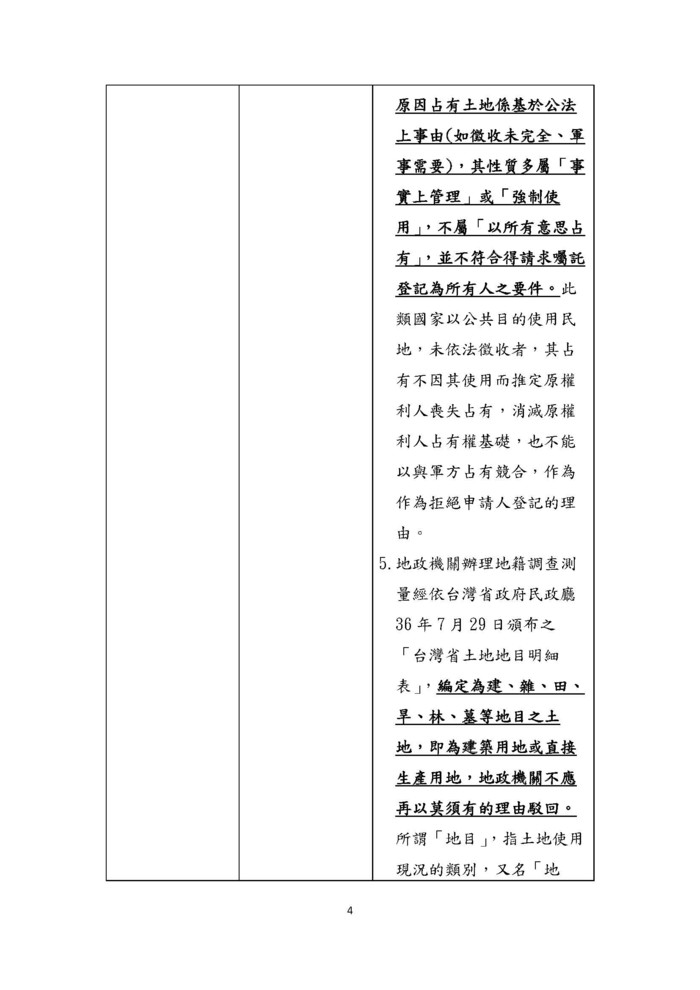 單純因為國家在私人土地上興建或使用軍事設施,不當然代表原土地所有權人或占有人喪失占有。地政機關也不能以「有軍事設施」作為否定申請人占有的依據,而拒絕申請人的土地登記。