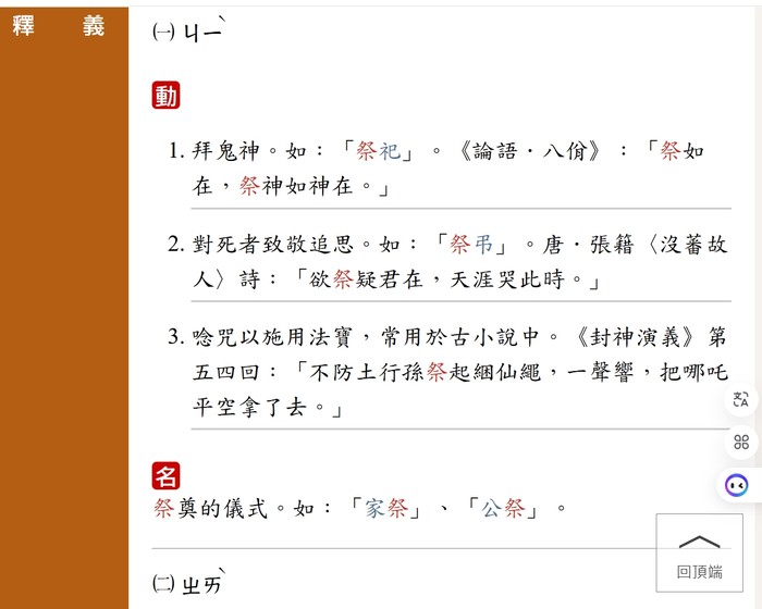 查教育部重編國語辭典修訂本,「祭」是什麼意思﹖