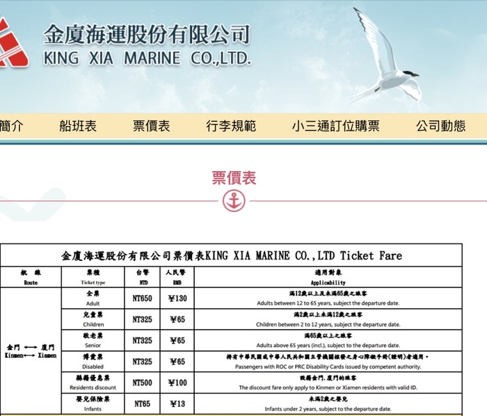 金馬小三通票價對敬老票的定義不同 --閱讀人次 : 1254 金廈小三通對敬老票半價是針對65歲以上的乘客(NT$325元)