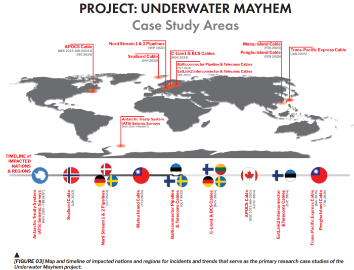 雖然本研究中的許多事件具備明顯的能源安全關聯,但本系列報告也將考慮對其他關鍵基礎設施(如電信與交通設施)的威脅。這種更廣泛的視角是必要的,因為能源基礎設施往往與其他形式的關鍵設施共同佈署,且攻擊與防禦水下基礎設施的模式具有許多相似性。
