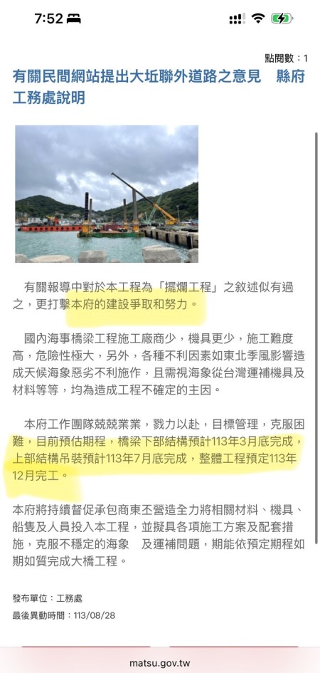 113年8月28日工務處發新聞嗆馬祖資訊網打擊縣府的努力