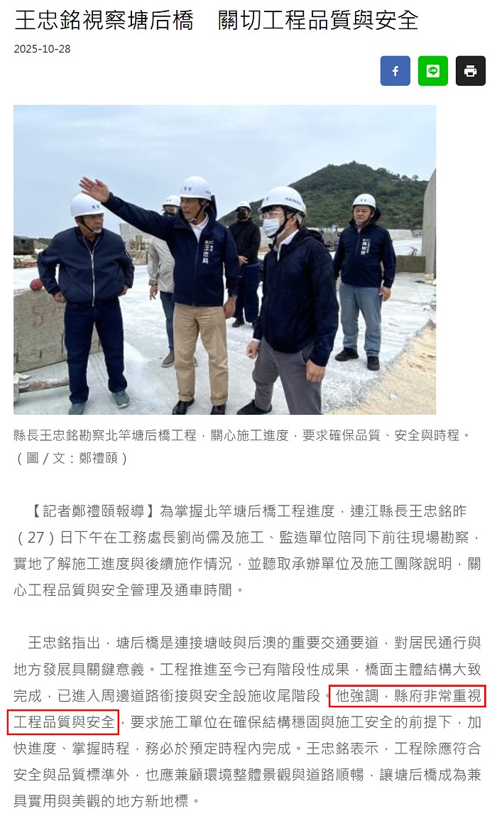 而且居然是先標到再搞個動工典禮後就放著,做完一個塘后橋才要再做下一個~