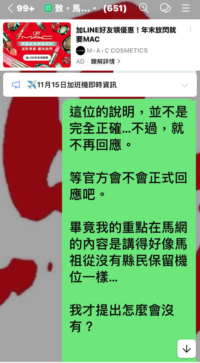 另,你對馬祖現行縣民保留機位的運作方式解釋,是比最先回應我的那位,更趨近現狀。這也是我在社群說,最先回應我的那位講的,並不完全正確原因。不是縣府先付錢買機位。