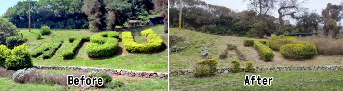 數年前,馬管處在南竿遊客中心以植栽打造「MATSU」入口意象,原是創意巧思的展現。然而自去年起,因長期缺乏維護而顯得殘缺荒蕪、難以辨識。諷刺的是,該處正是馬管處員工每日進出的必經之地。