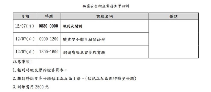 職業安全衛生業務主管回訓