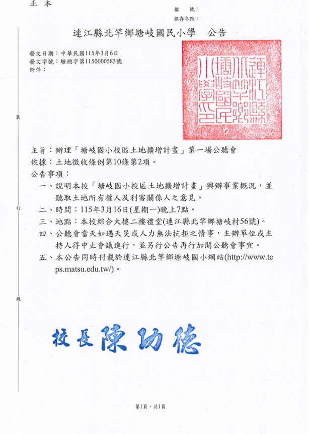 塘岐國小校區土地擴增計畫公聽會