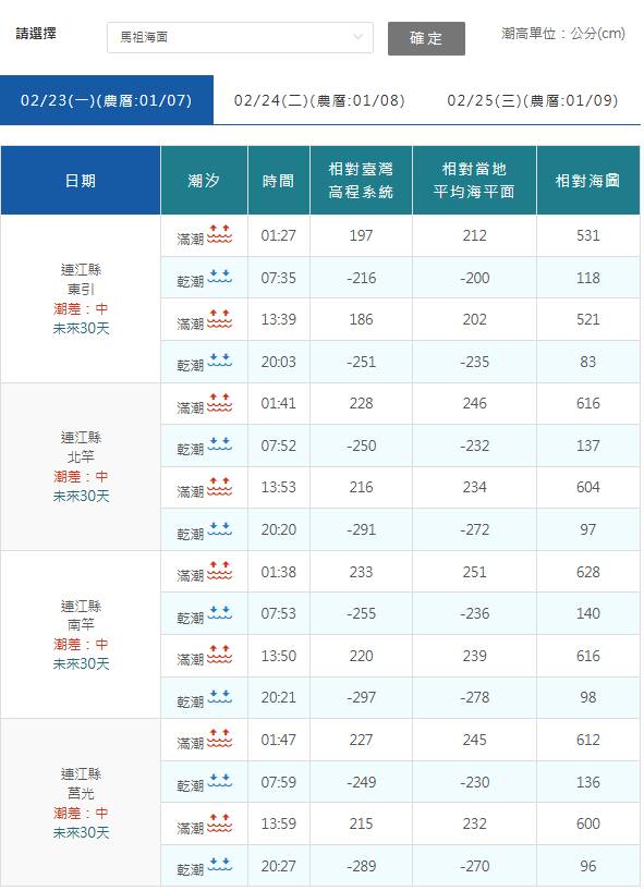 莒光航班(02月份先東後西)
