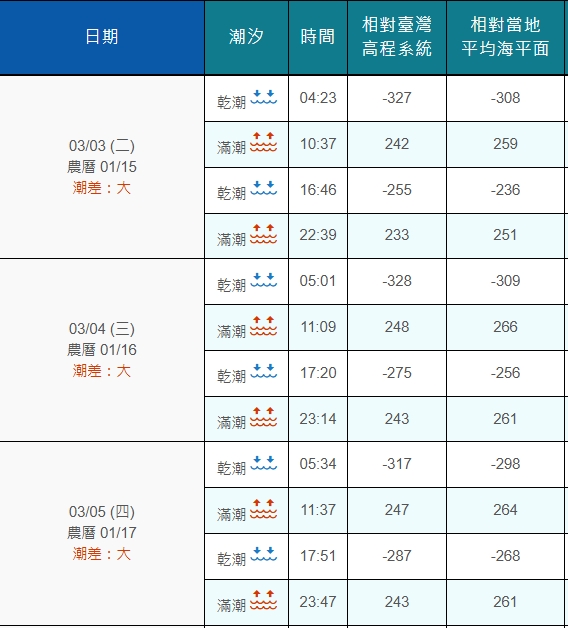 根據中央氣象署潮汐預報