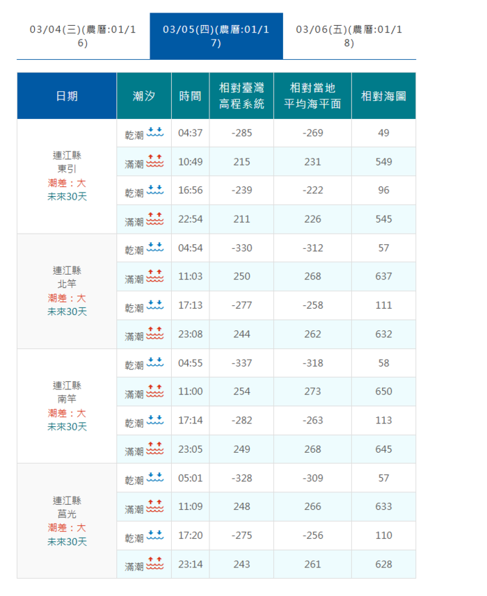 12:00-南竿-莒光【南北之星】適逢農曆滿潮,延後1小時