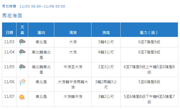 因海象不佳,為旅客及船舶安全考量原11/04-11/05東引航班停航。