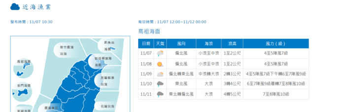 因海象不佳,為旅客及船舶安全考量原11/09東引航班停航。