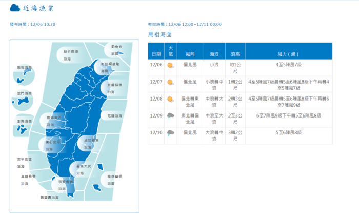 12/10(三 ) 08:30 南竿至東引