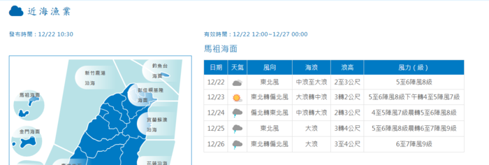 因海象不佳,為旅客及船舶安全考量12/24-12/26東引航班停航。