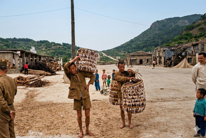 外公會挑著簍框,裡面放著大哥和大姊去山上躲土坑洞。