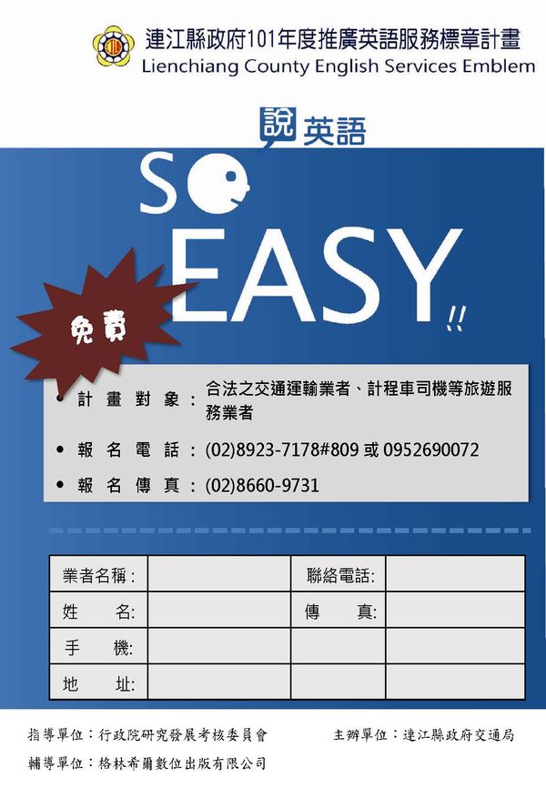 連江縣政府101年度推廣英語服務標章計劃說明會資訊