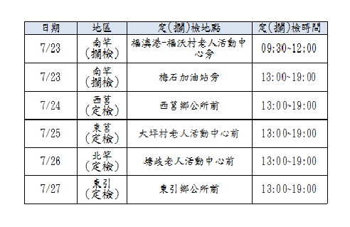 本府環保局將暫定7月份於南竿地區辦理機車攔檢作業,需定期檢驗尚未檢驗者,請至鼎鑫機車行進行檢驗;檢測不合格者若未進行調修,屆時攔檢未檢驗合格將處以罰鍰新台幣2,000元整。