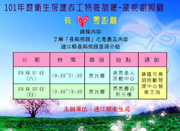 101年度衛生保健志工特殊訓練-談長期照顧「有愛零距離」