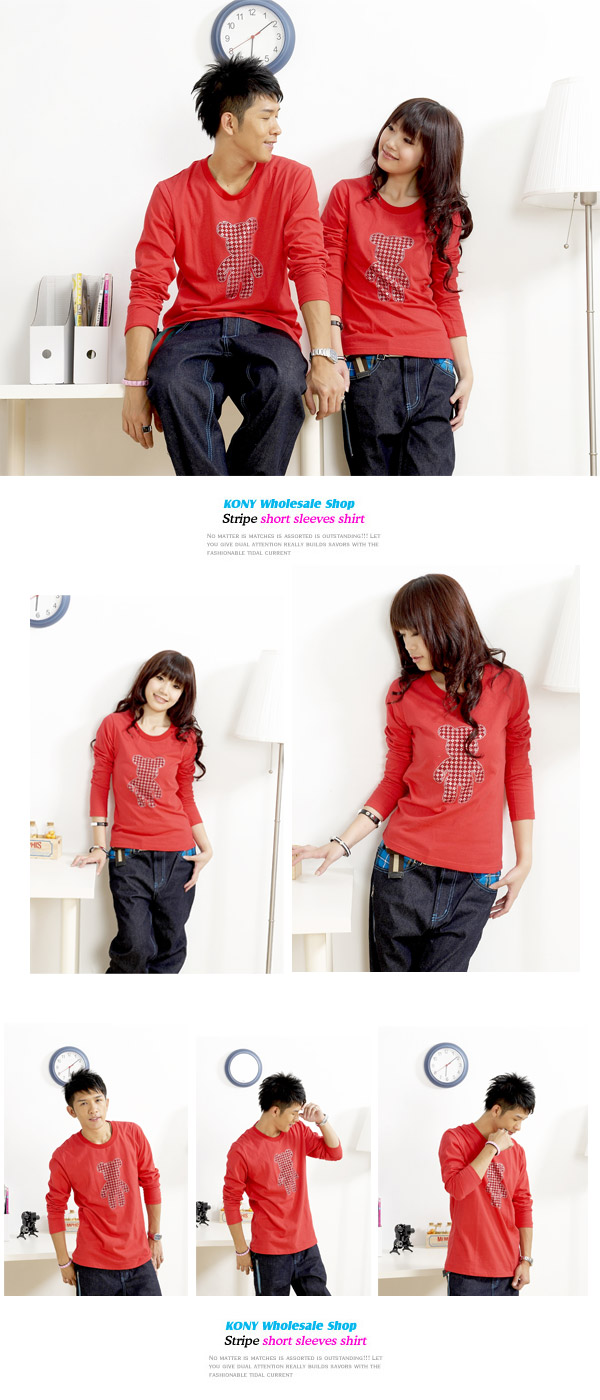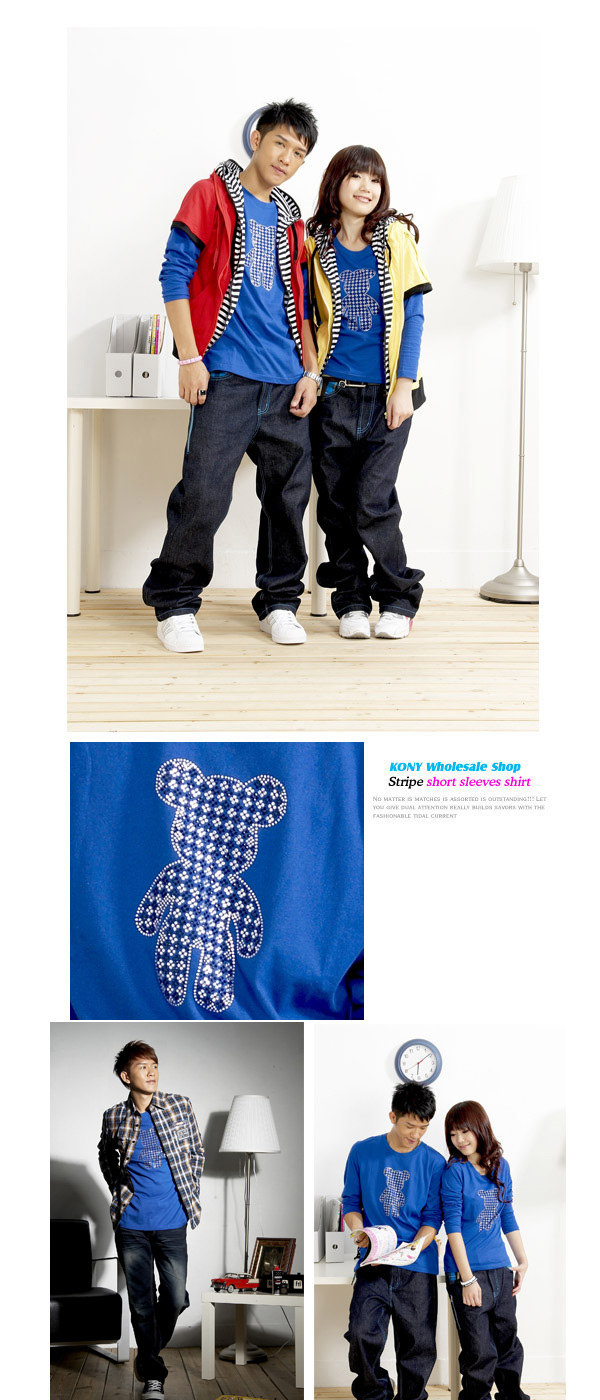 時尚百搭村上隆BLING閃亮水鑽小熊情侶長袖T=尺碼S.L