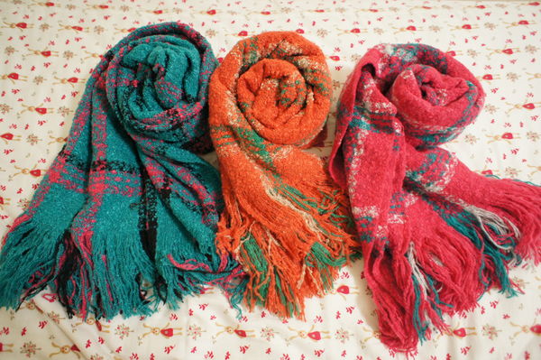 綠桃藍格款(厚)(可當披肩)(200CM*72CM)1條$380!