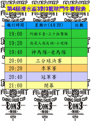 第四屆清水盃今天(4/20星期六)賽程: